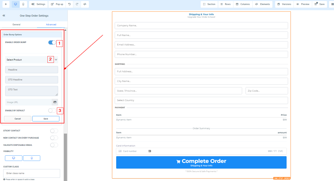 “Enable by default” allows you to set the order bumps to turn on by default.