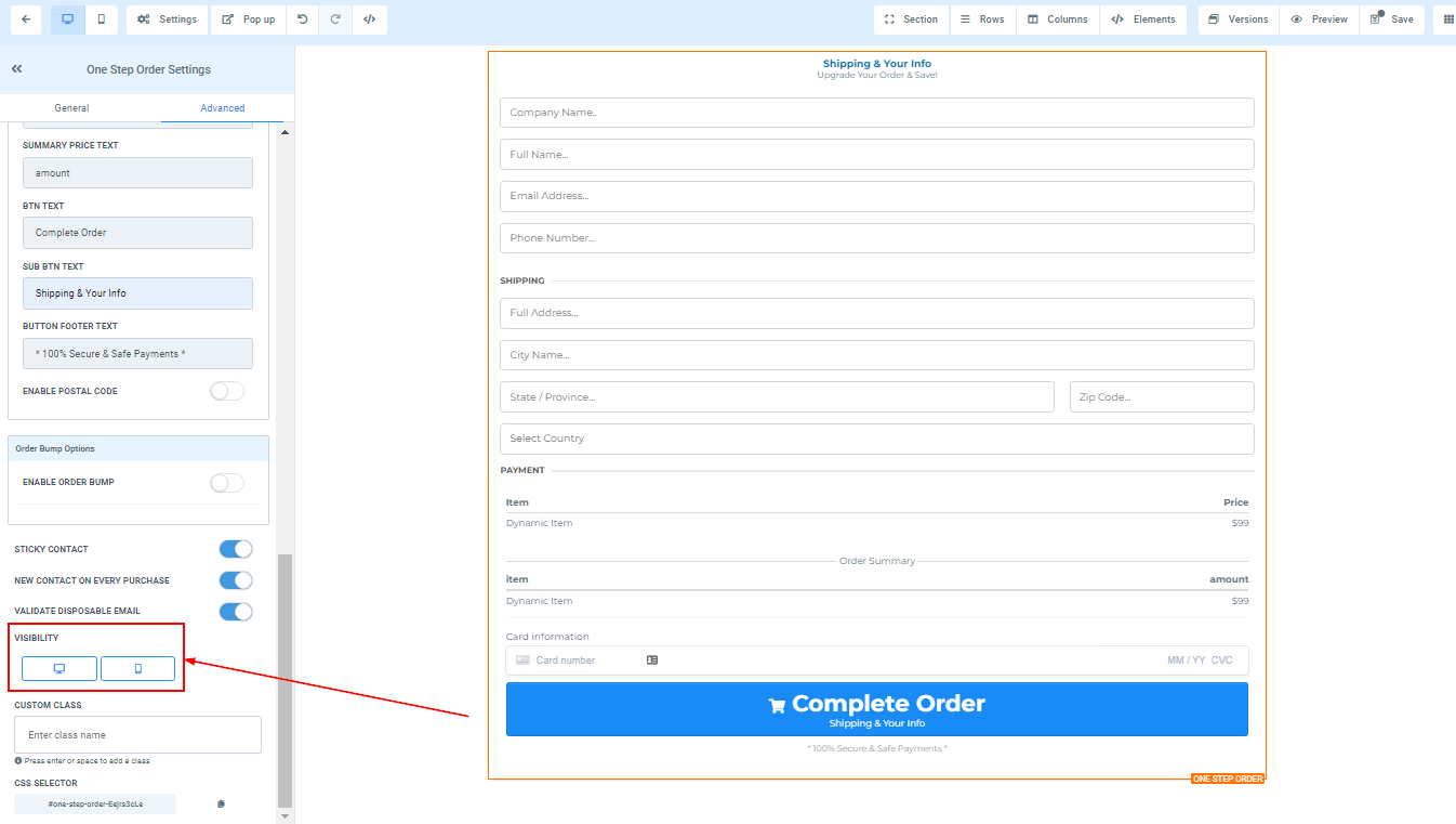 You can decide if you want this particular Edit option to be visible on only mobile devices, desktops, or both by clicking on it to highlight the icon.