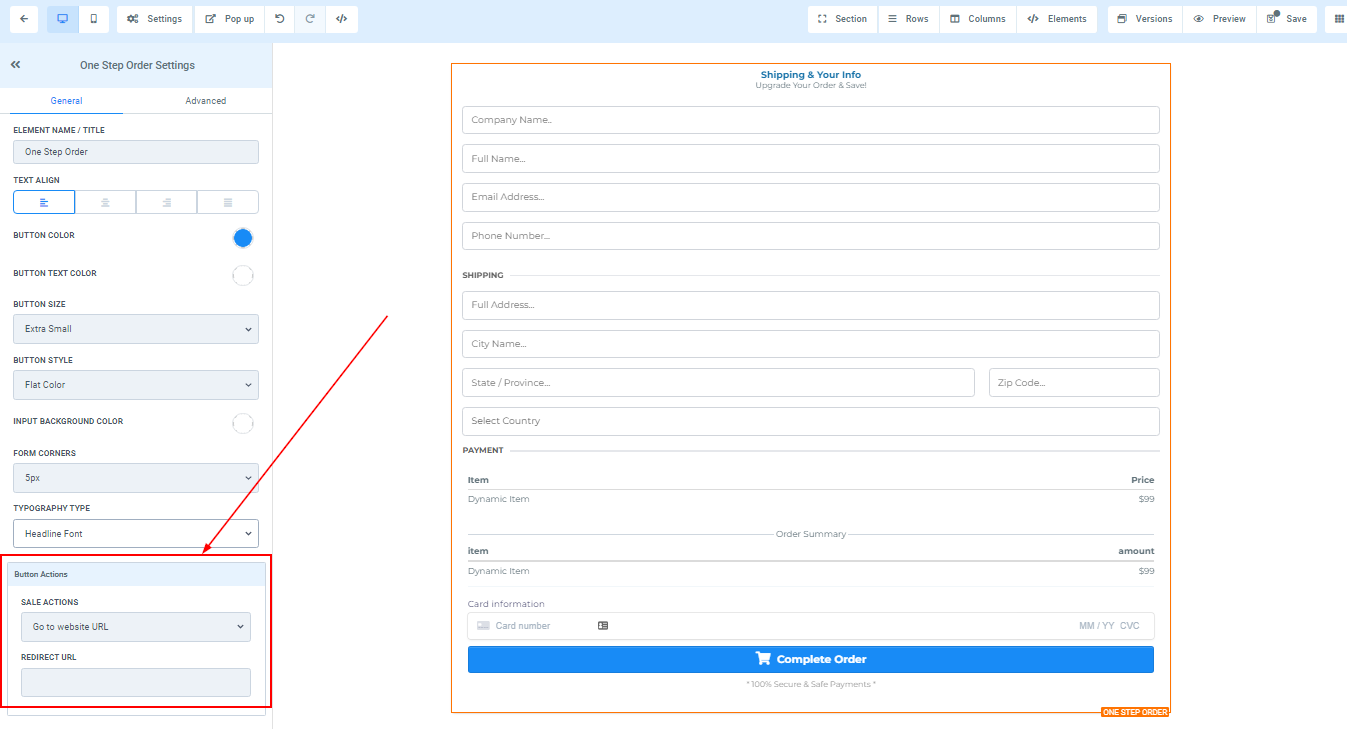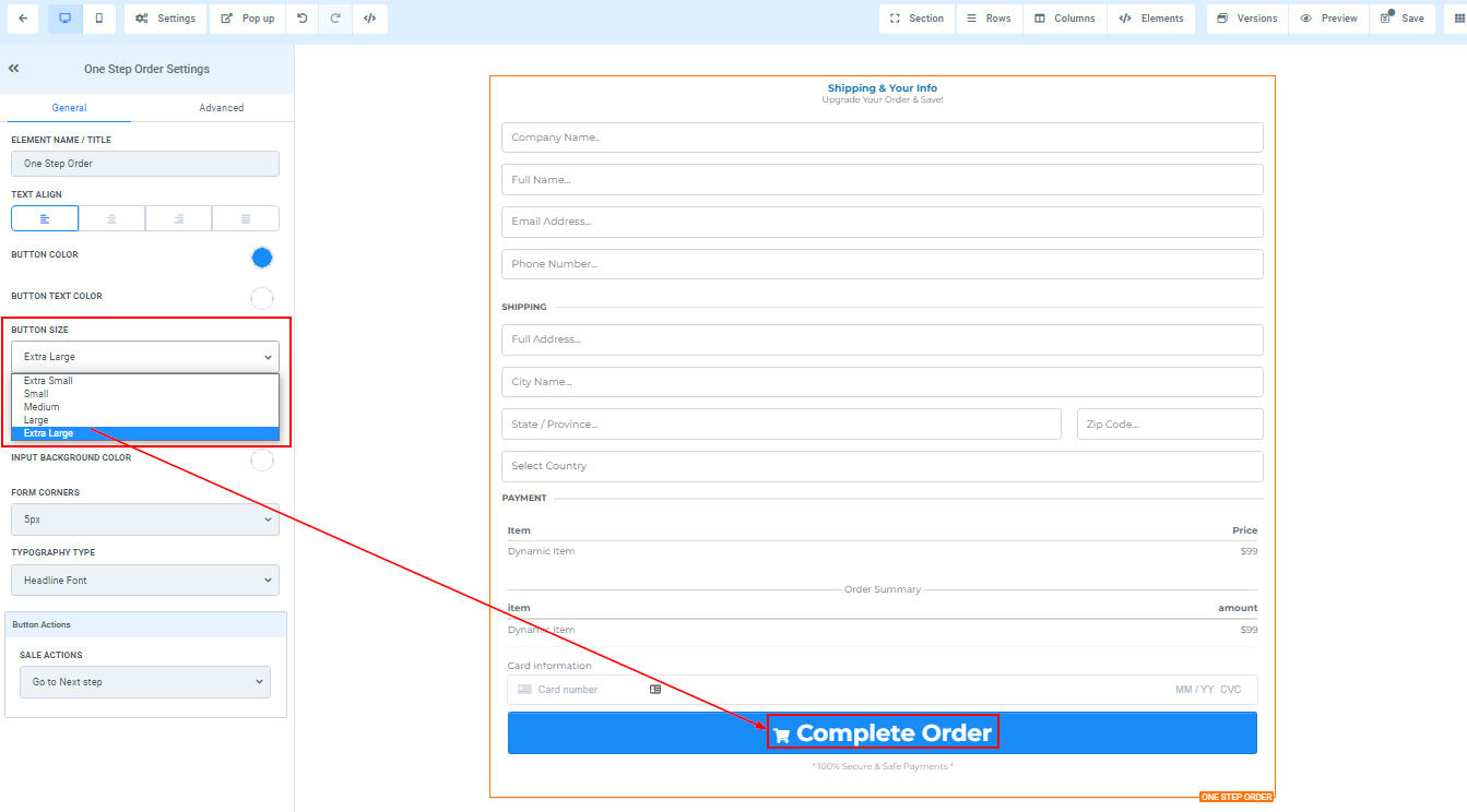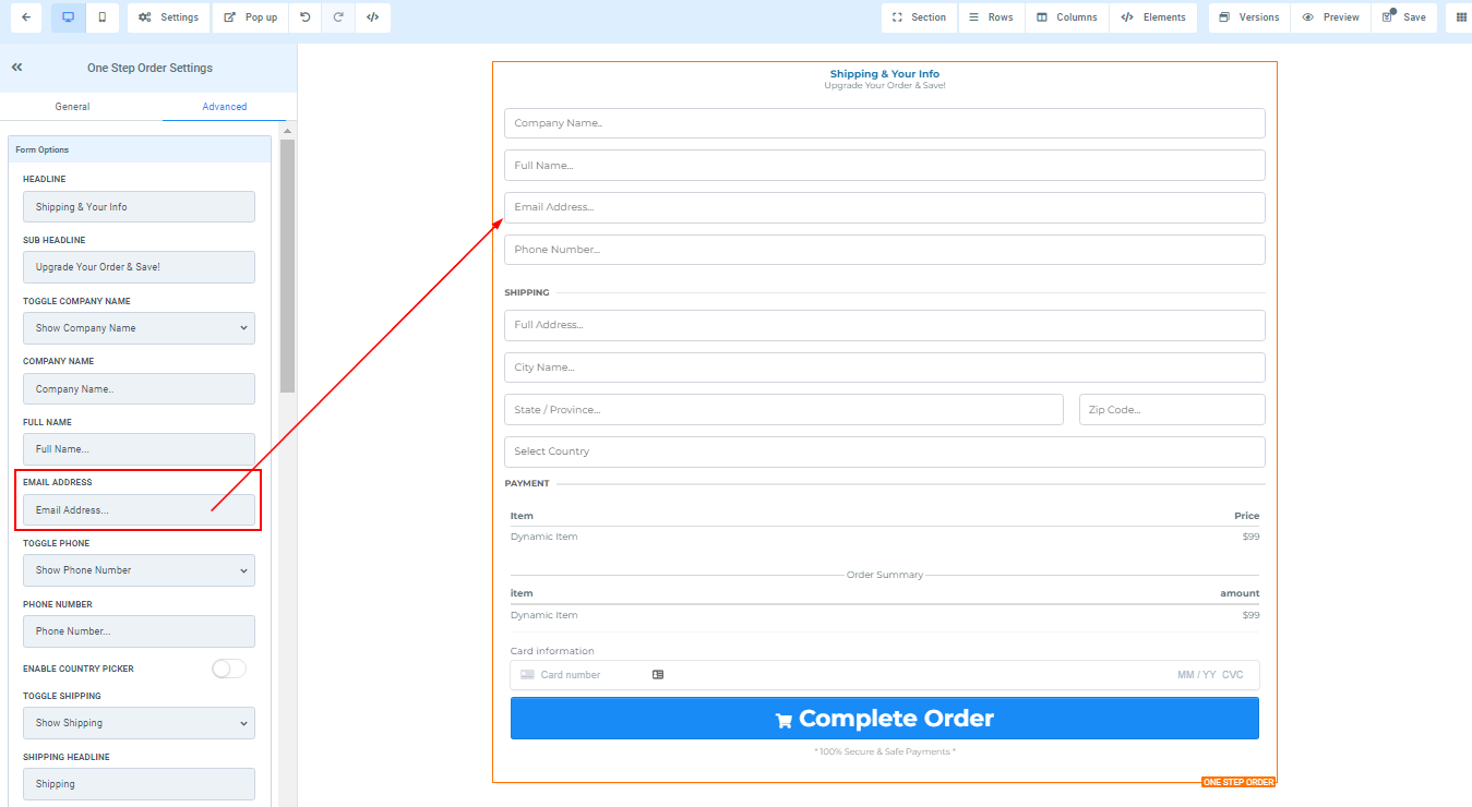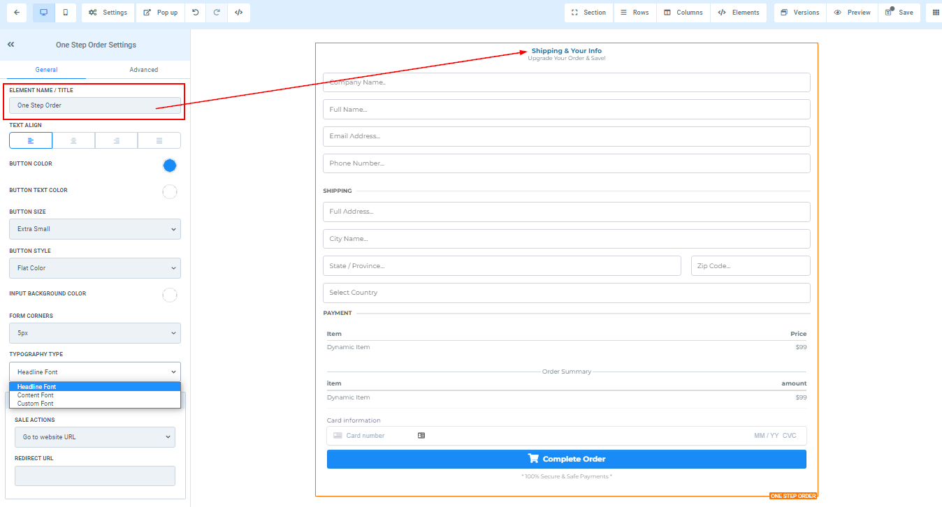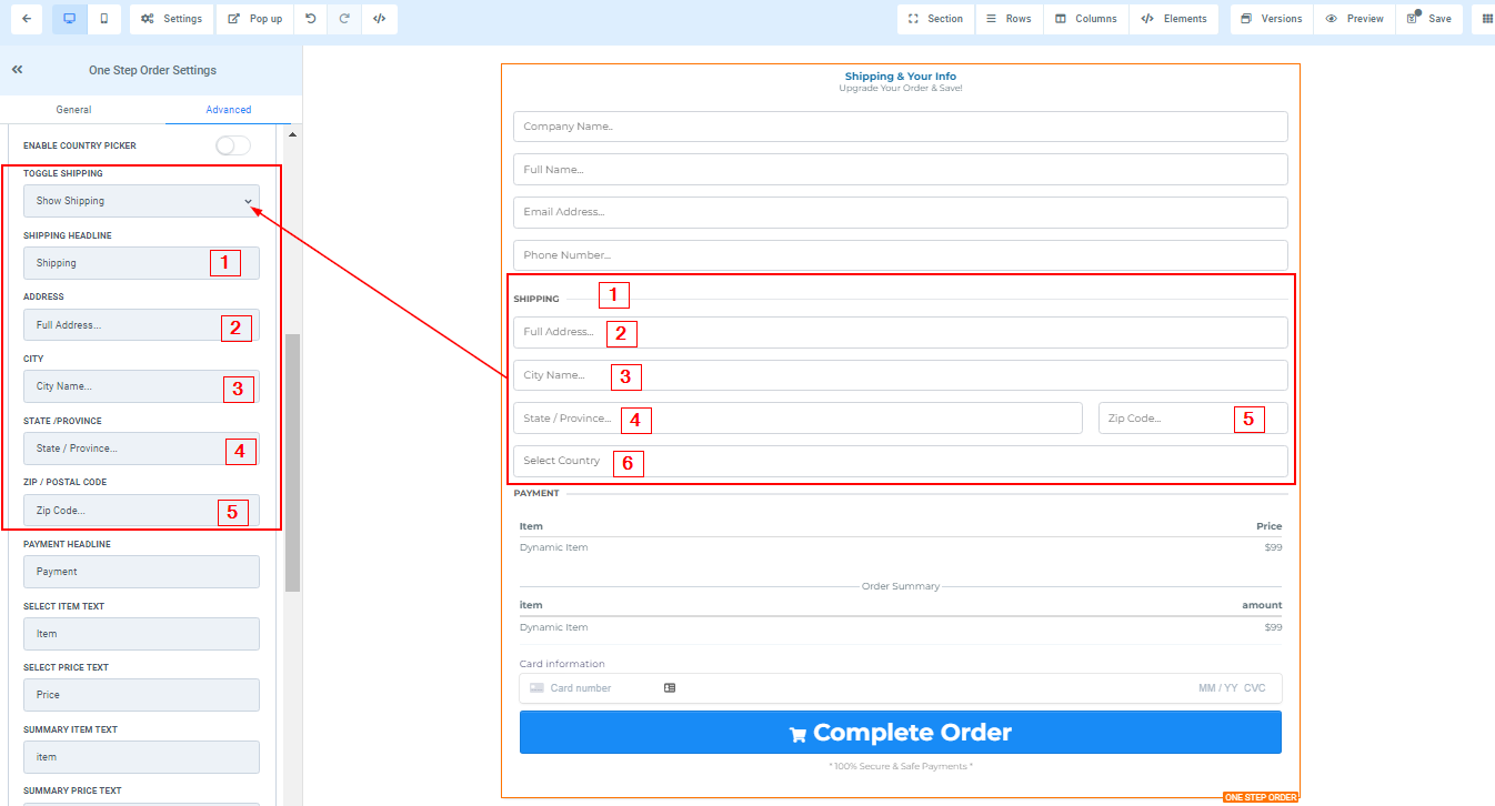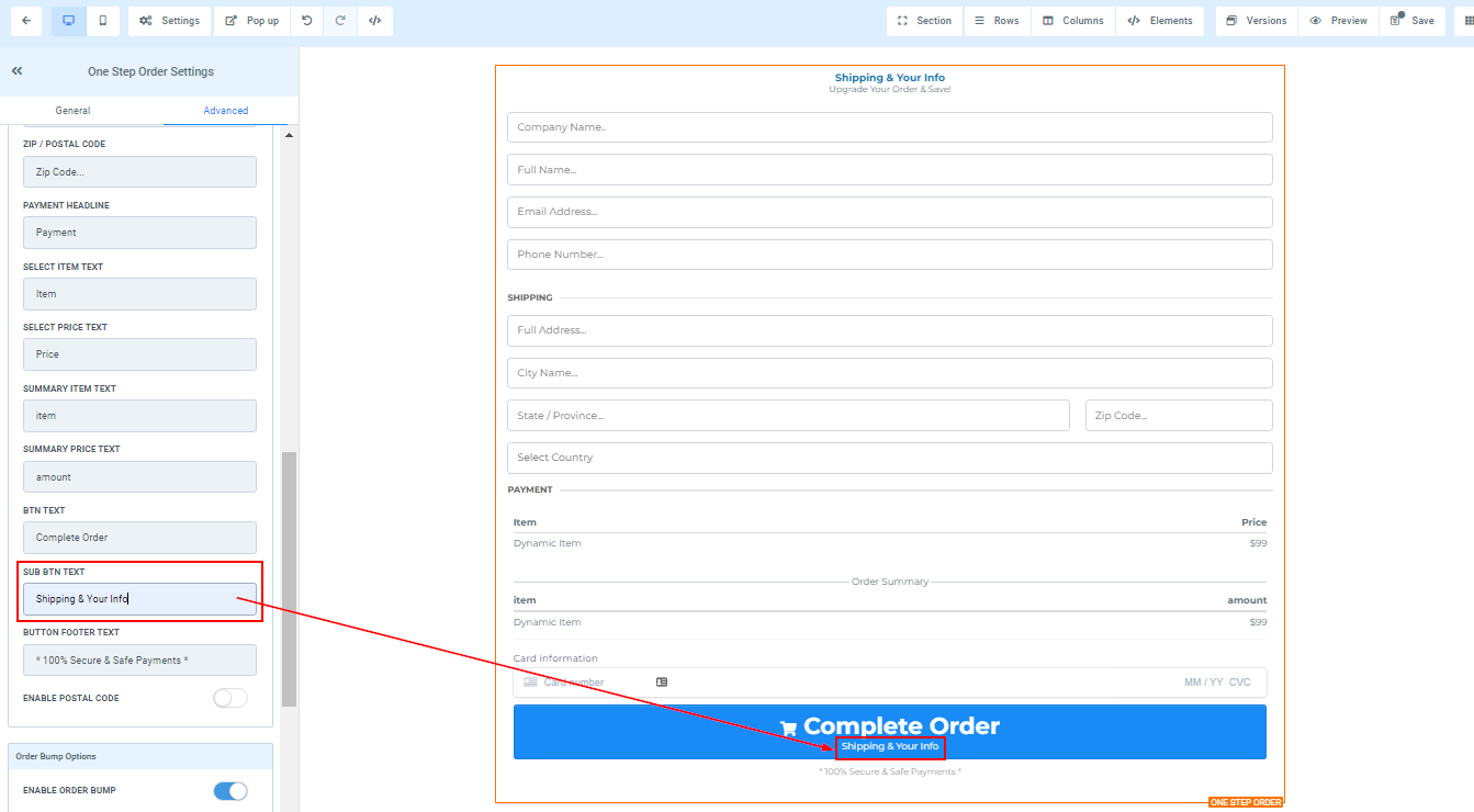 You can use this element to get the shipping detail of your customer and some other information. For 1-Step Order Form, you will have the Shipping details and the information combined in one form.