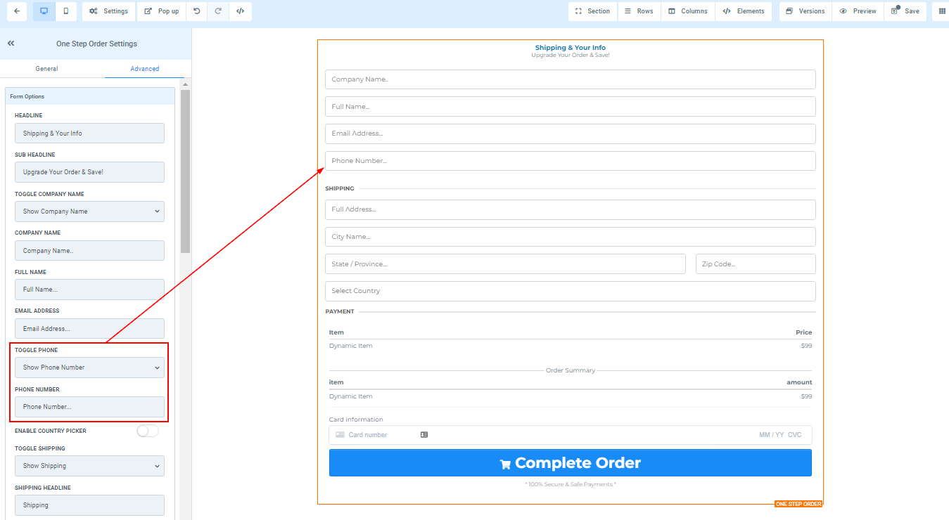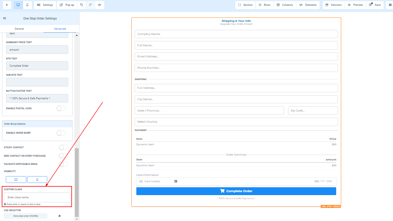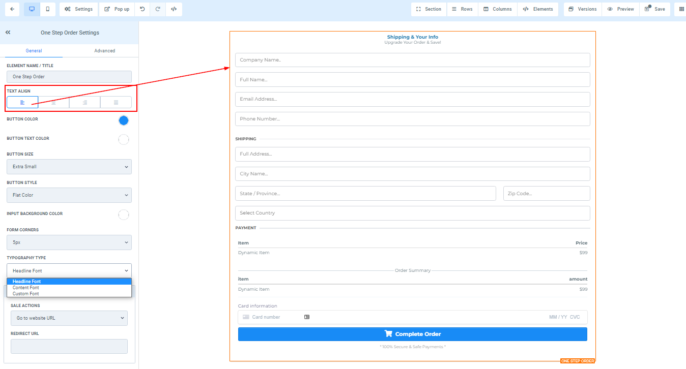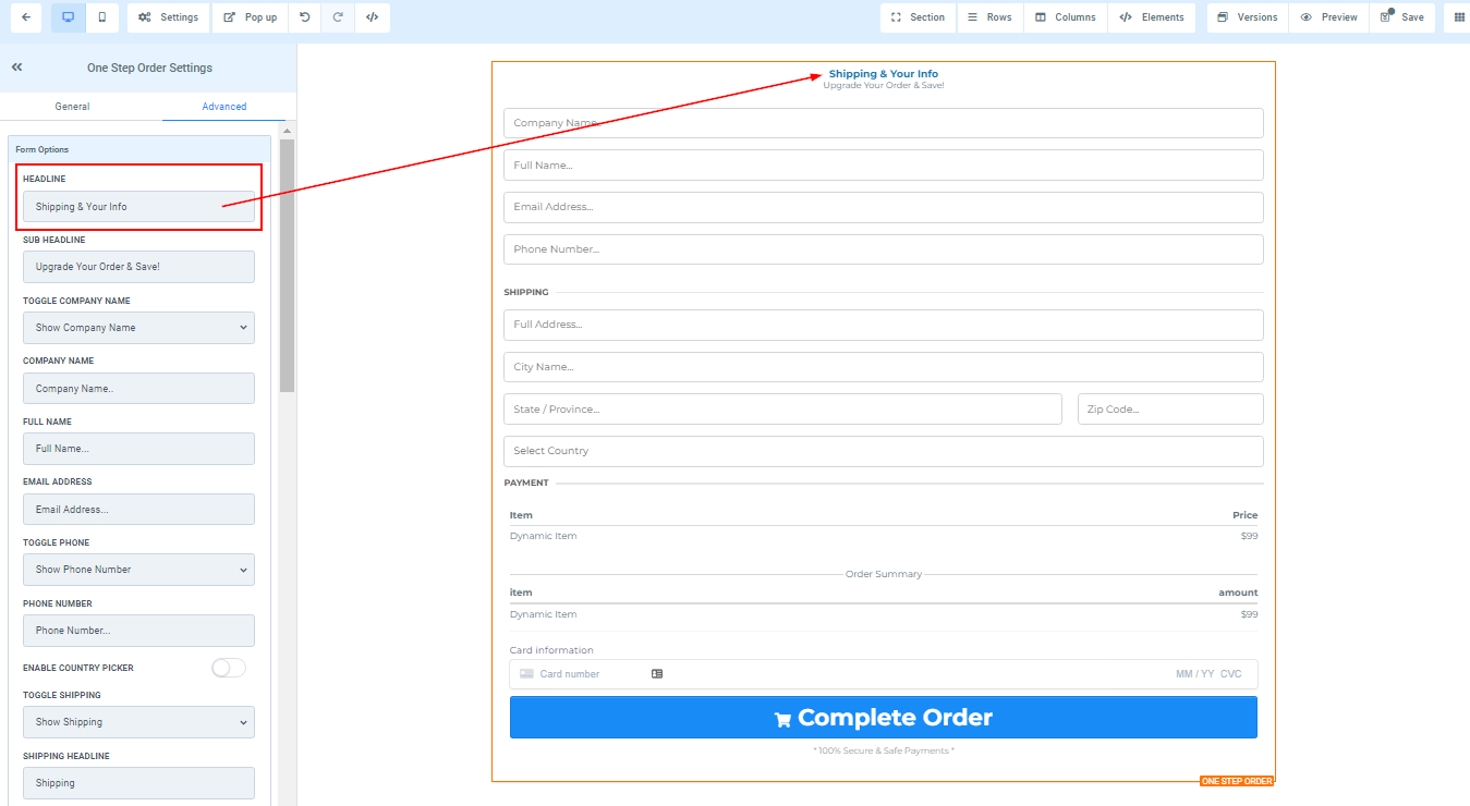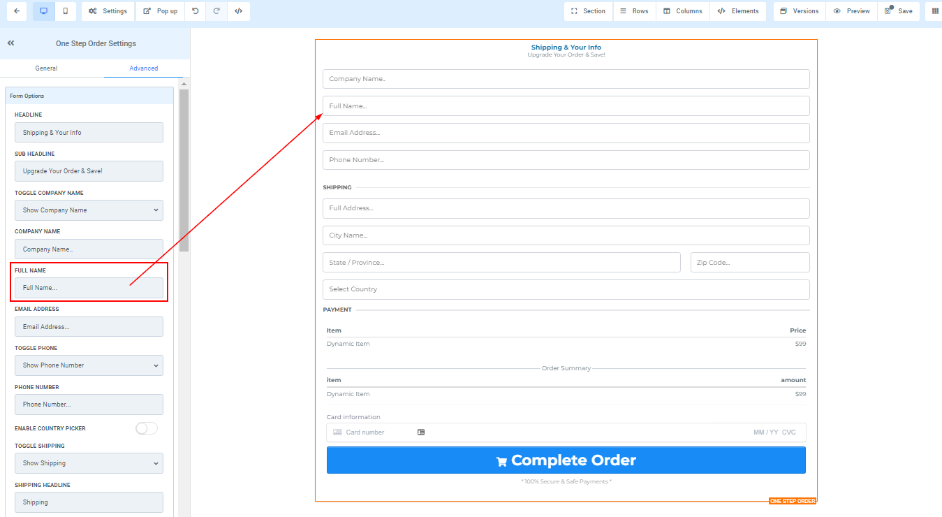 You can use this element to get the shipping detail of your customer and some other information. For 1-Step Order Form, you will have the Shipping details and the information combined in one form.