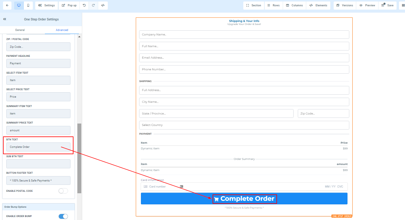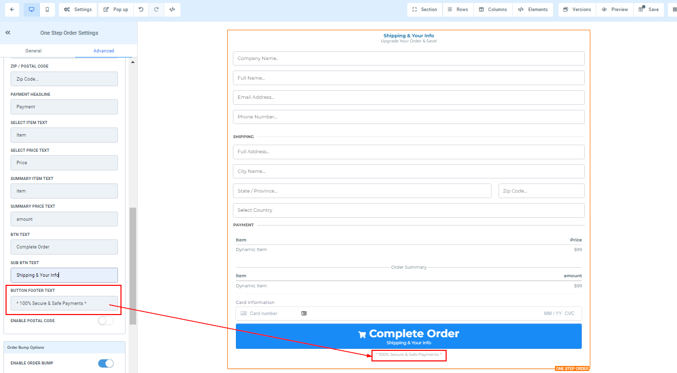 Order Bump Options