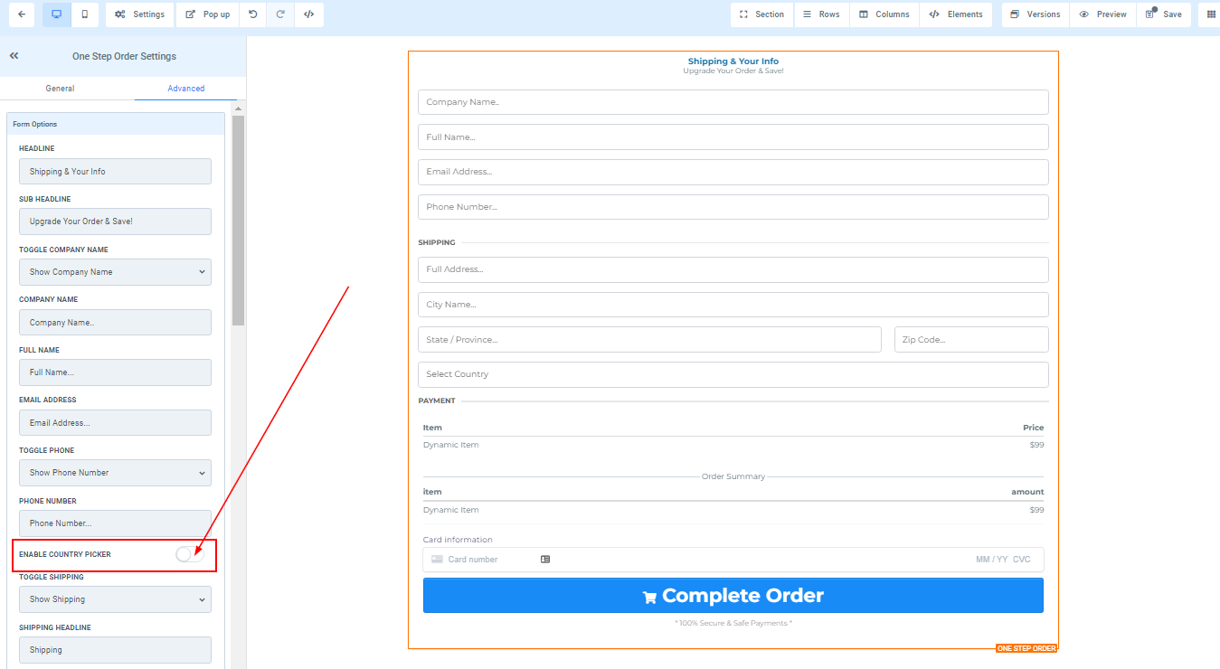 You can toggle on or off the country picker here.