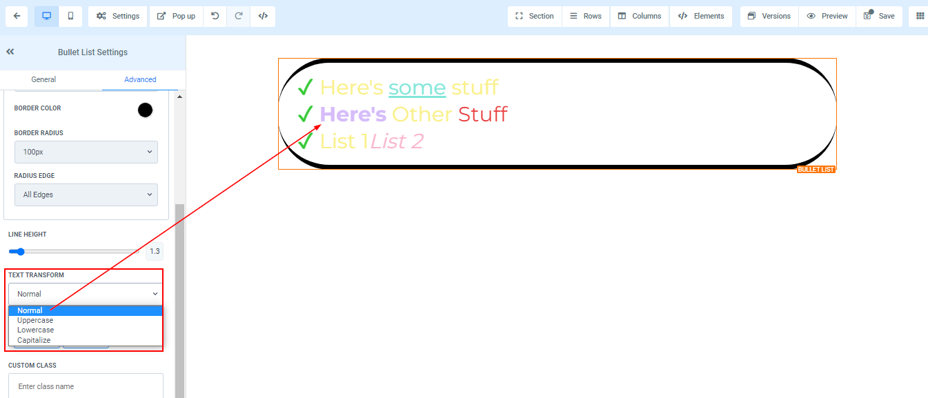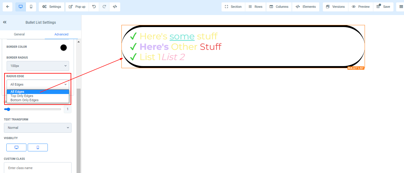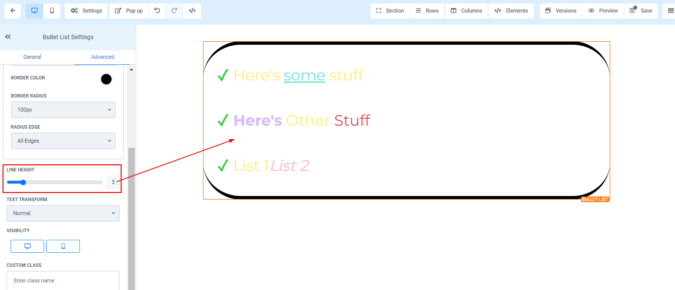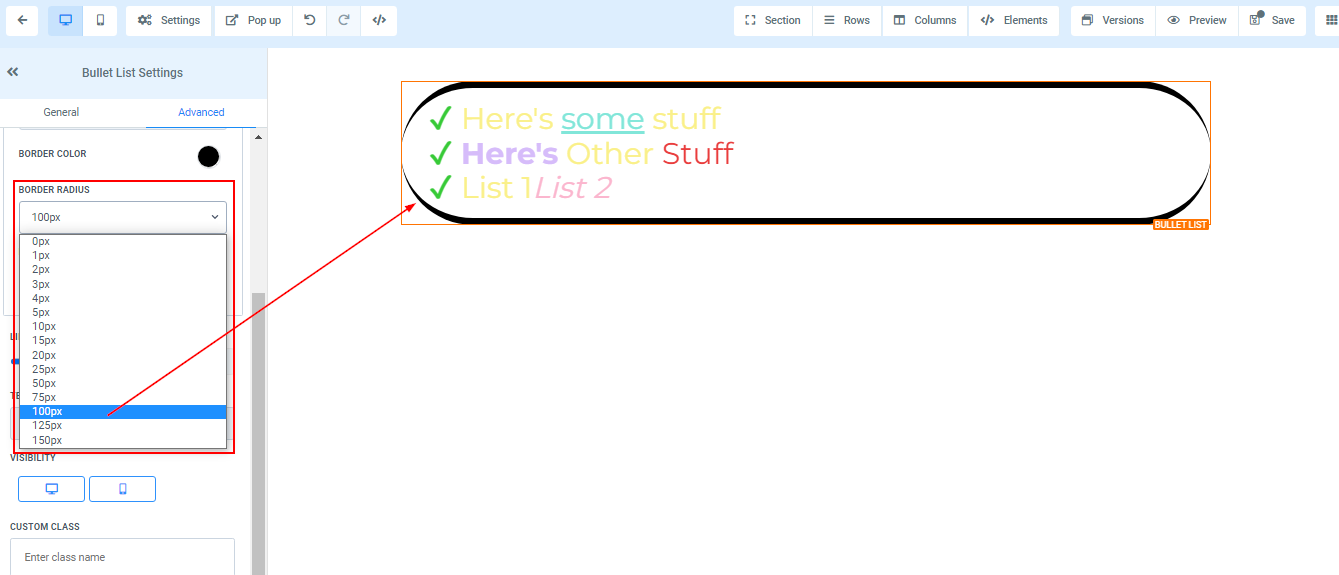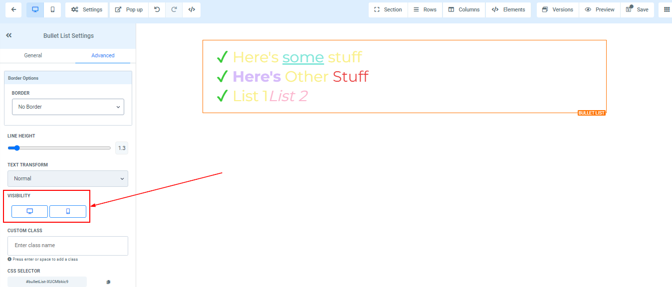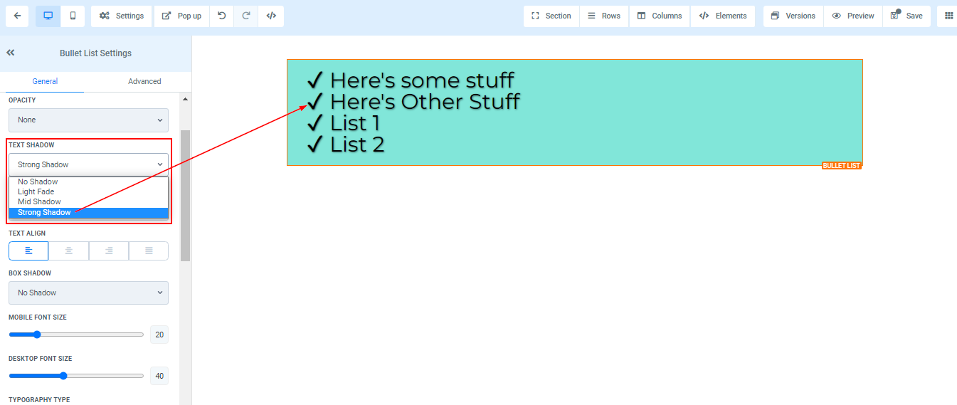To add a Bullet list to your page, simply drag and drop the bullet list in the editor’s space to manage the settings.