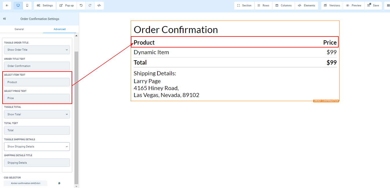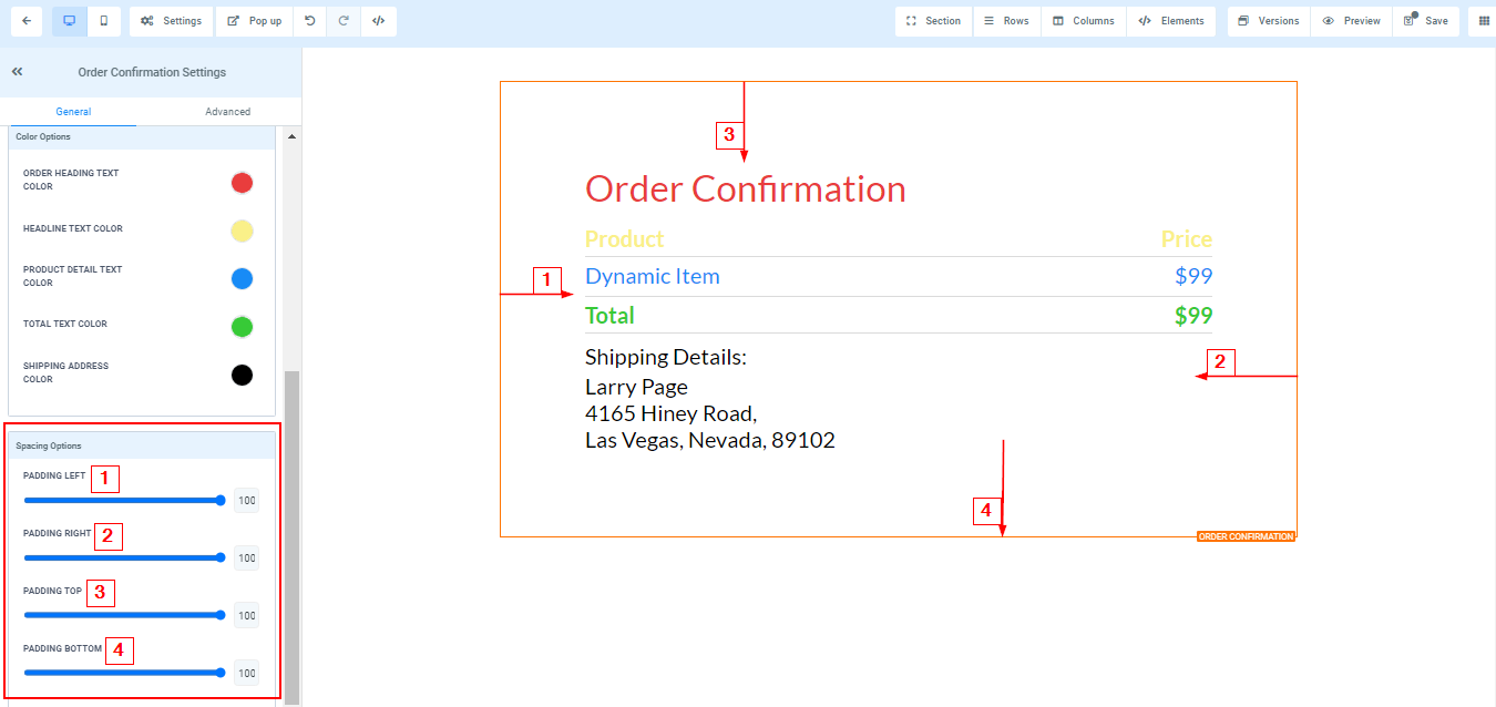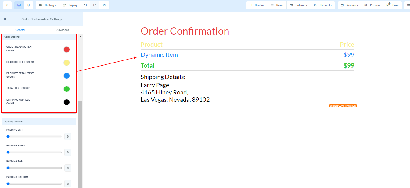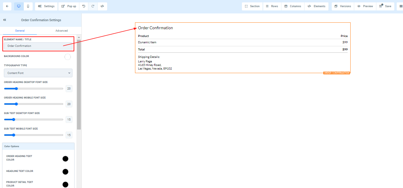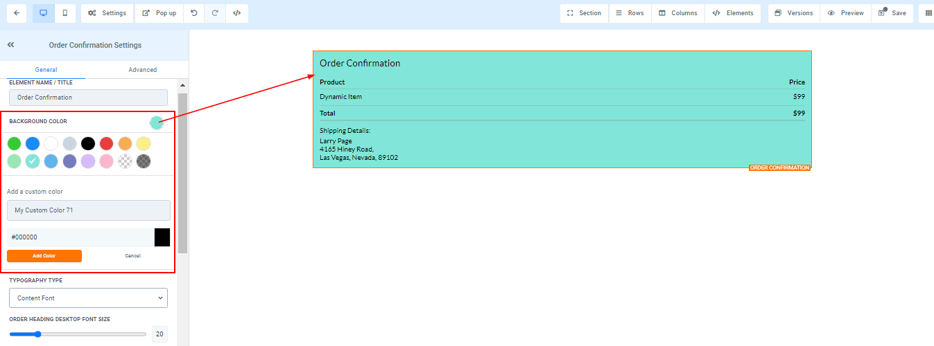 - Order Heading Text Color****You can only edit the Order heading text color here