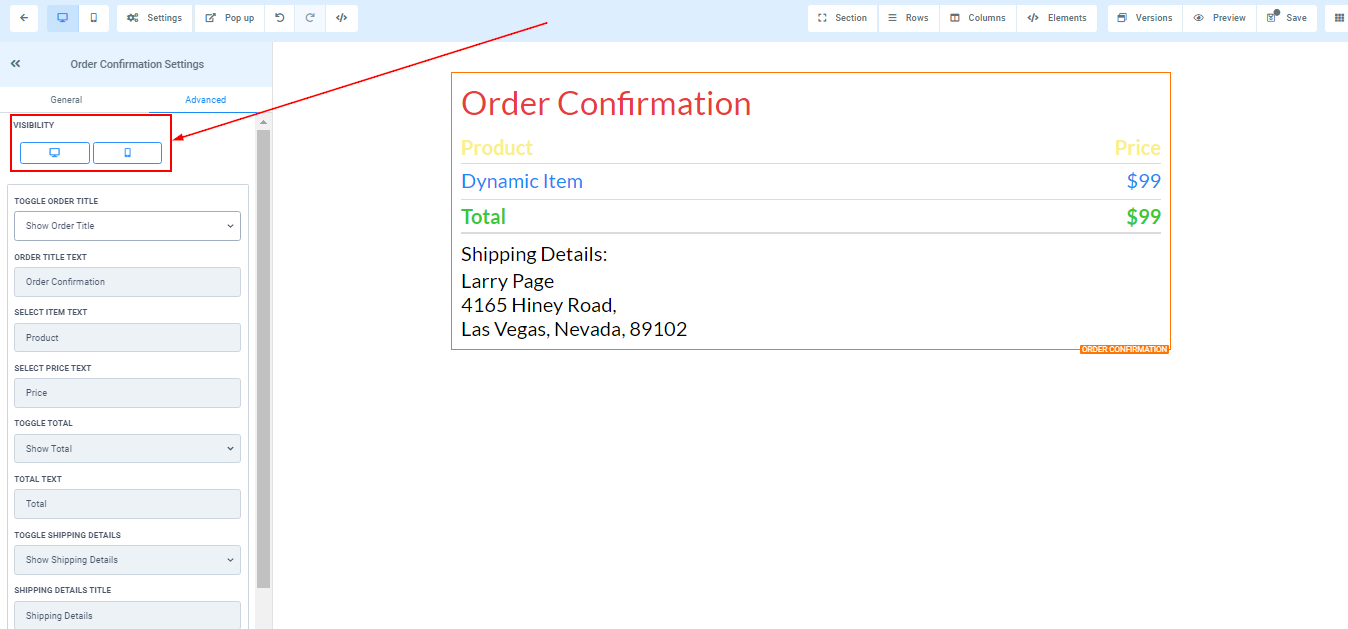 You can decide if you want this particular Edit option to be visible on only mobile devices, desktops, or both by clicking on it to highlight the icon.