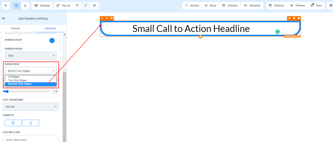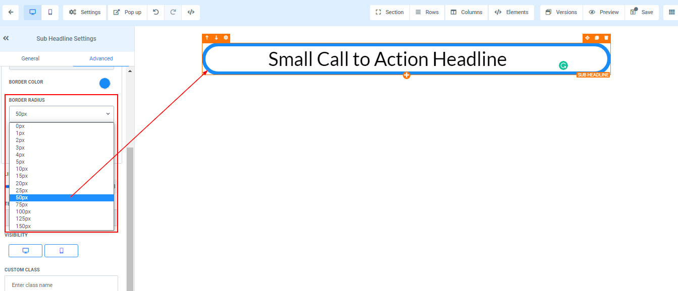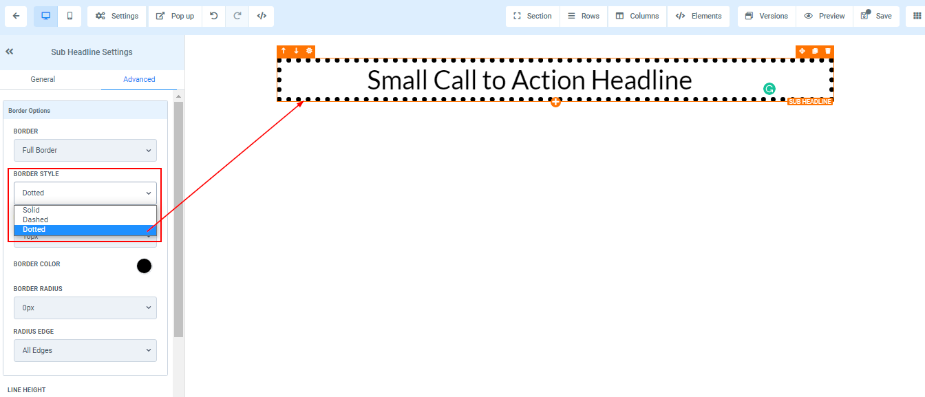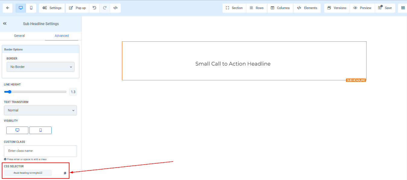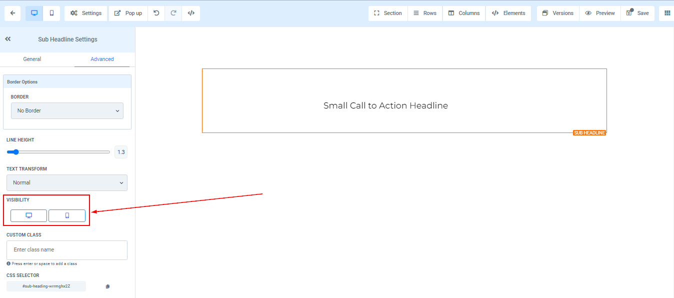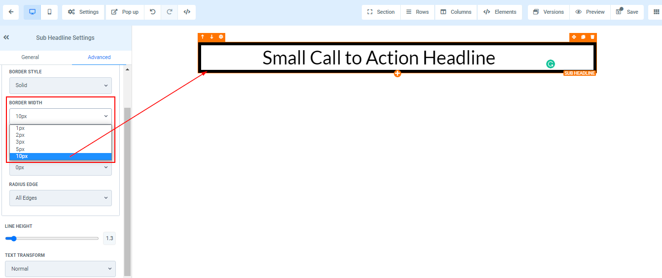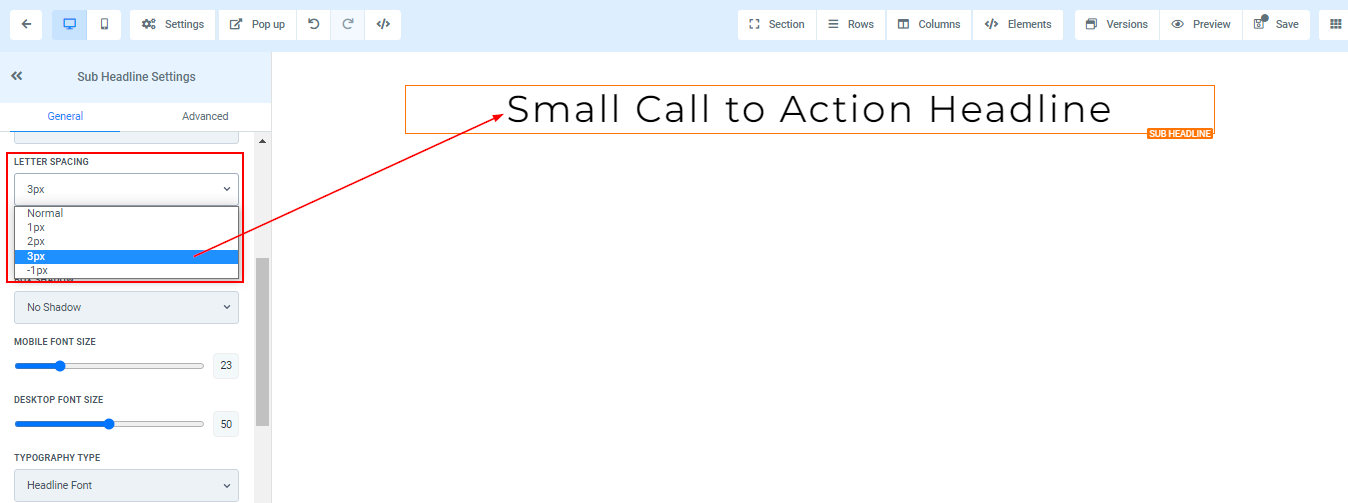 To add a sub-headline, drag and drop the Sub-headline in the editor’s space to manage the settings.