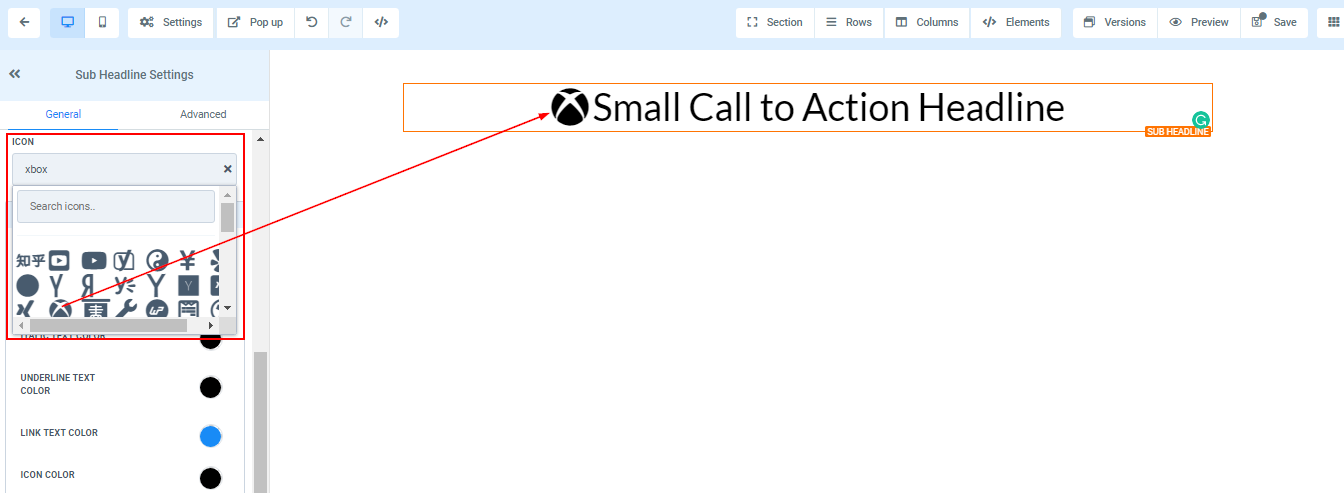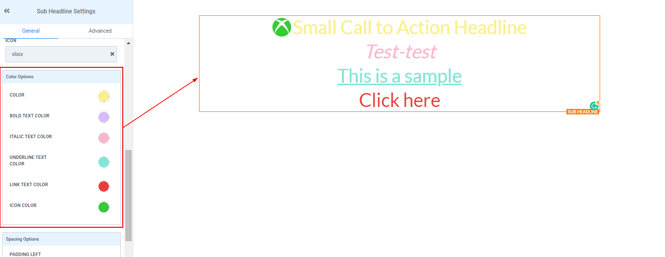 - Icon Color****If you have an icon added to this page, you can only edit the icon color here. Only the icon color will change regardless of the position it’s placed.