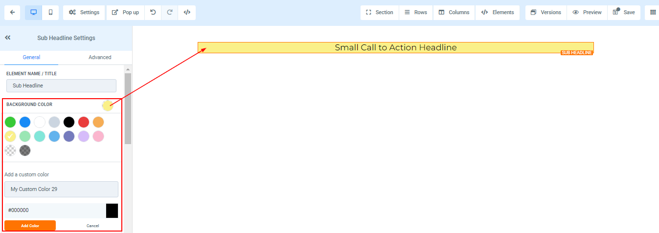 If you want to change the background color of your headline, you can do that by clicking on the content you want to adjust its background.