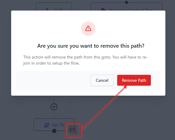 To delete a path, click on the pink unlink icon, then click “Remove path”.