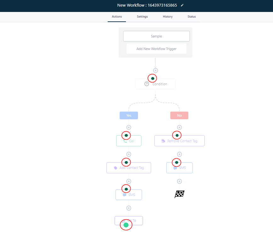 Once a contact hits this GoTo step, they will automatically jump to whatever event you’ve connected with the dotted line. For instance, the image below shows that they will automatically jump to the “Remove contact tag” event.