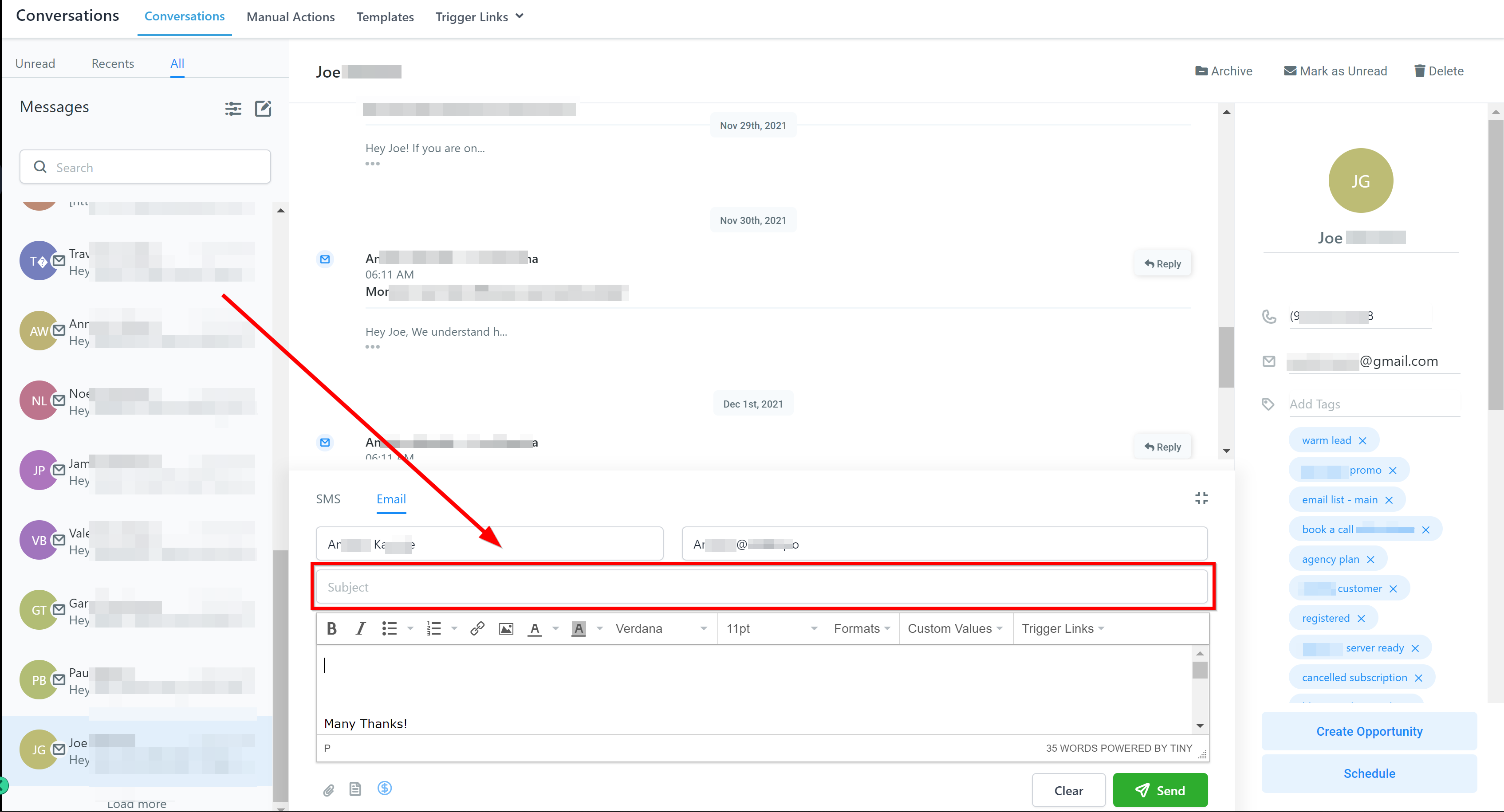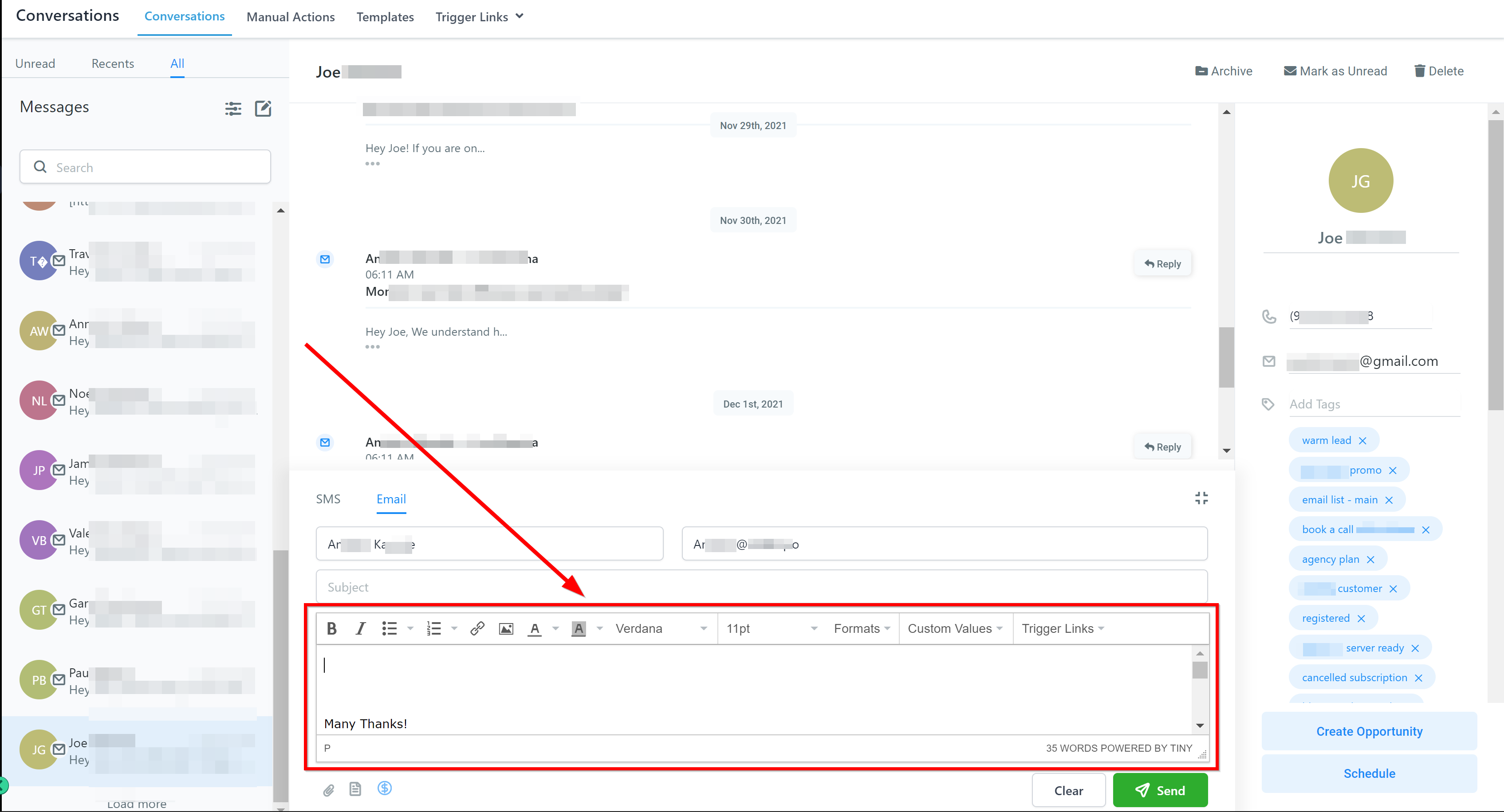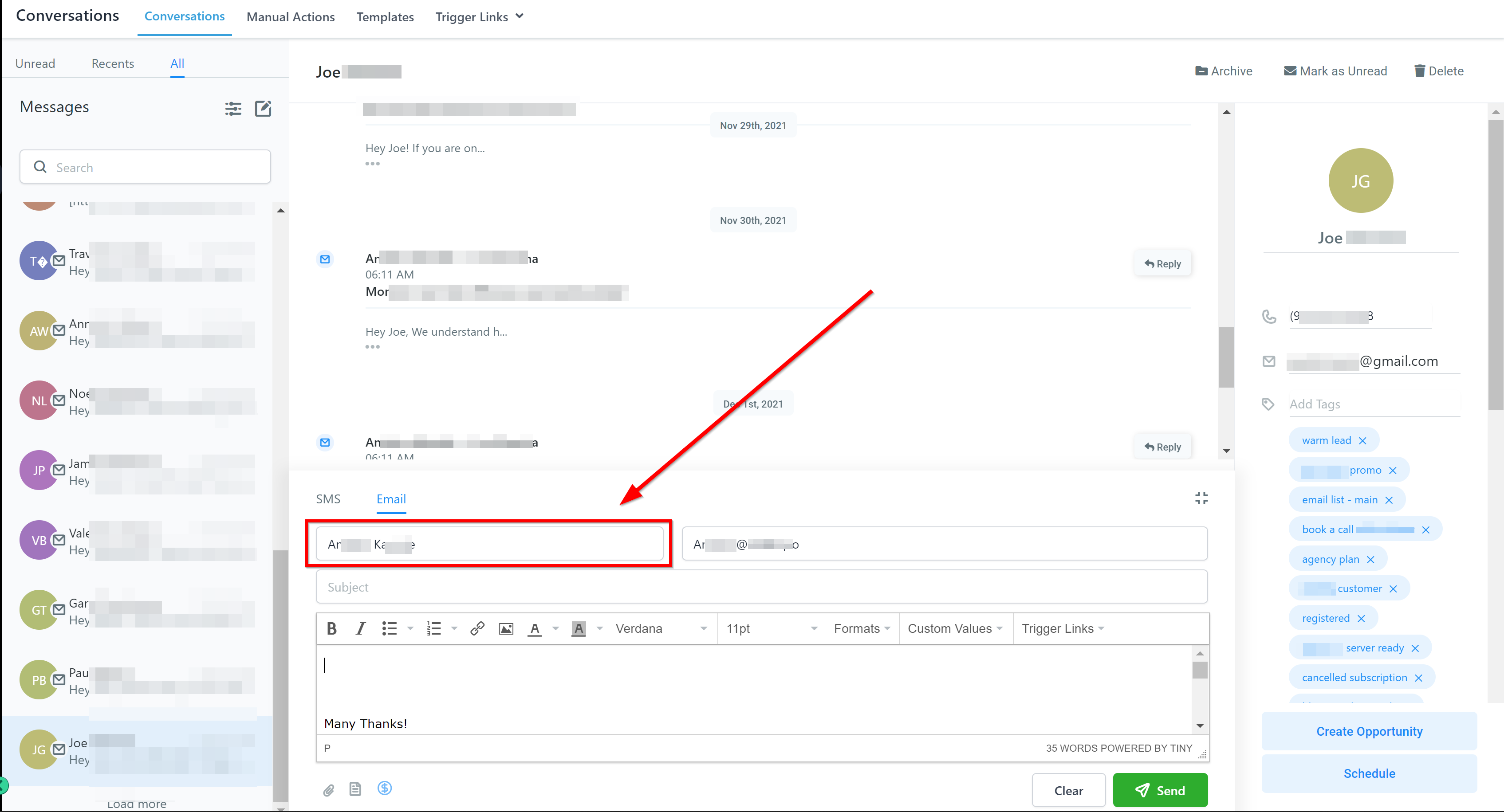 You can add a variety of custom values to your emails in order to customize them using the exact information that a specific customer previously entered in a form, survey, or appointment calendar. To learn more about custom values, click here: Custom Values