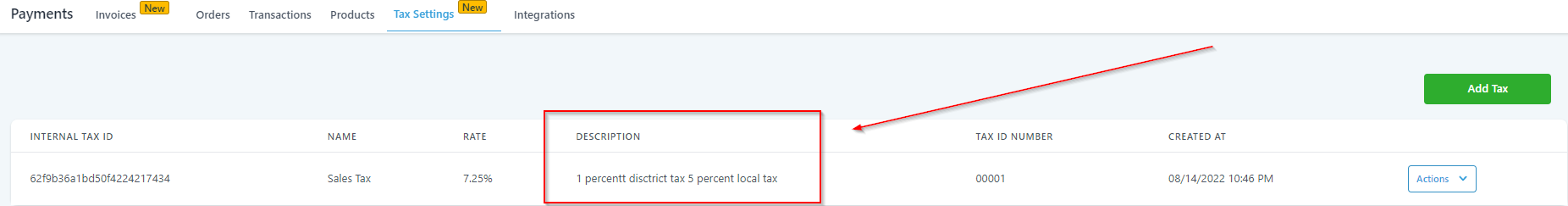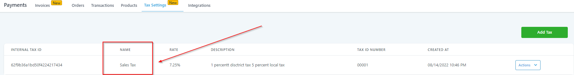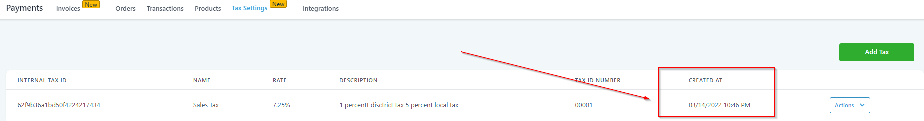 The date and time when you created the Tax will be shown here.