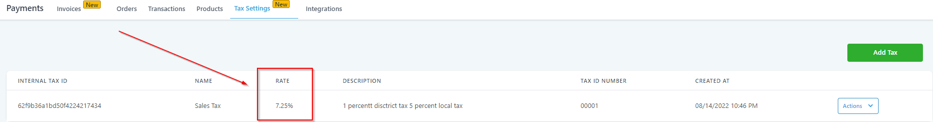Here you will see the Tax rate you have specified for the selected Tax such as 7.25% etc.