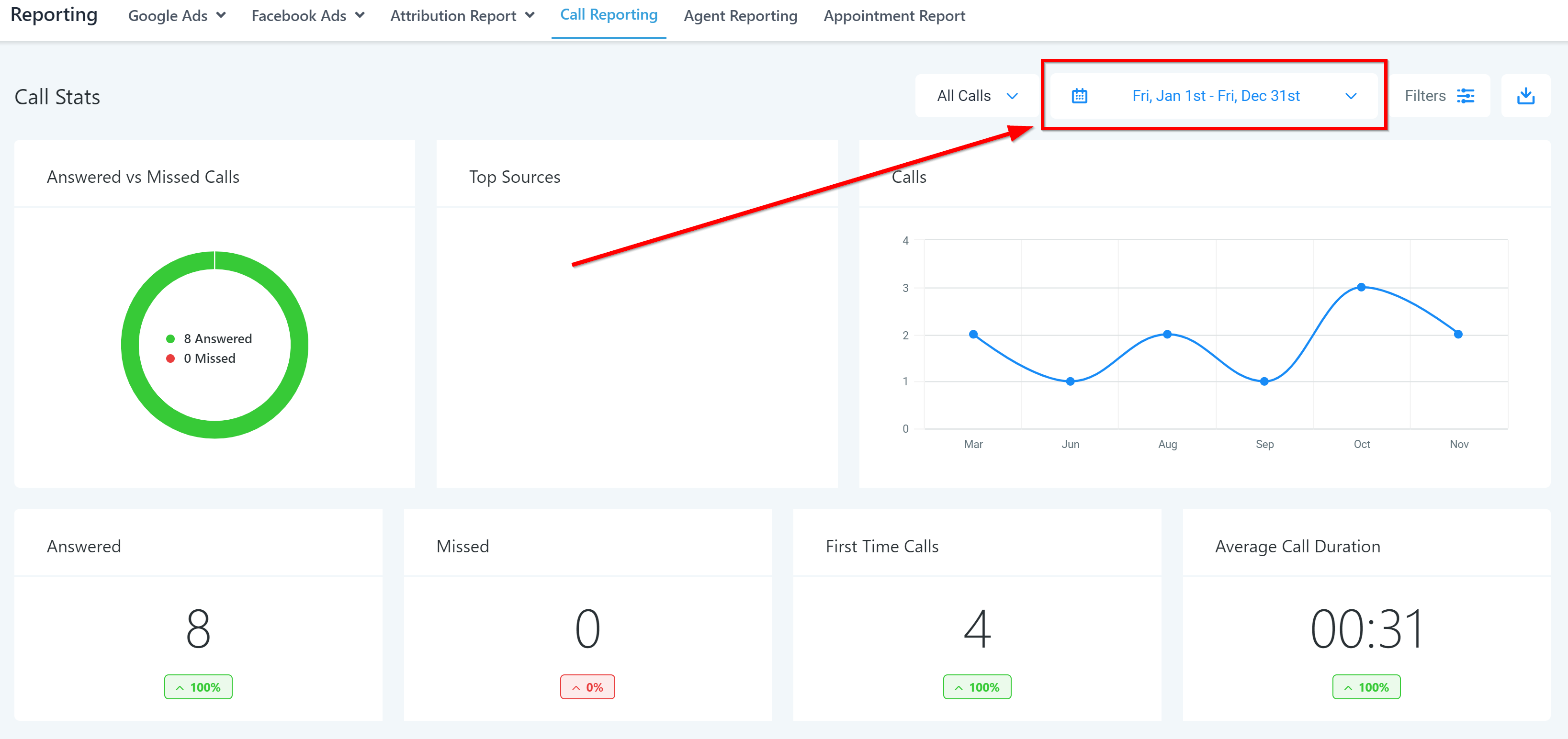 In order to properly analyze call data, you will need to set specific date ranges.