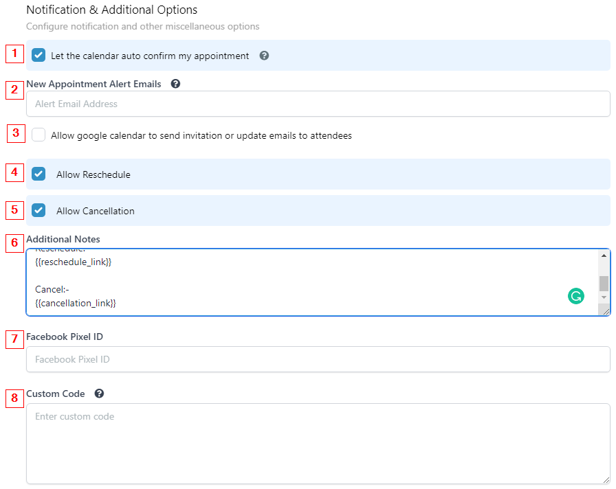 If you want to give the option to reschedule, check this box. It will send a rescheduling link along with the confirmation email. This can also be done manually in your CRM.