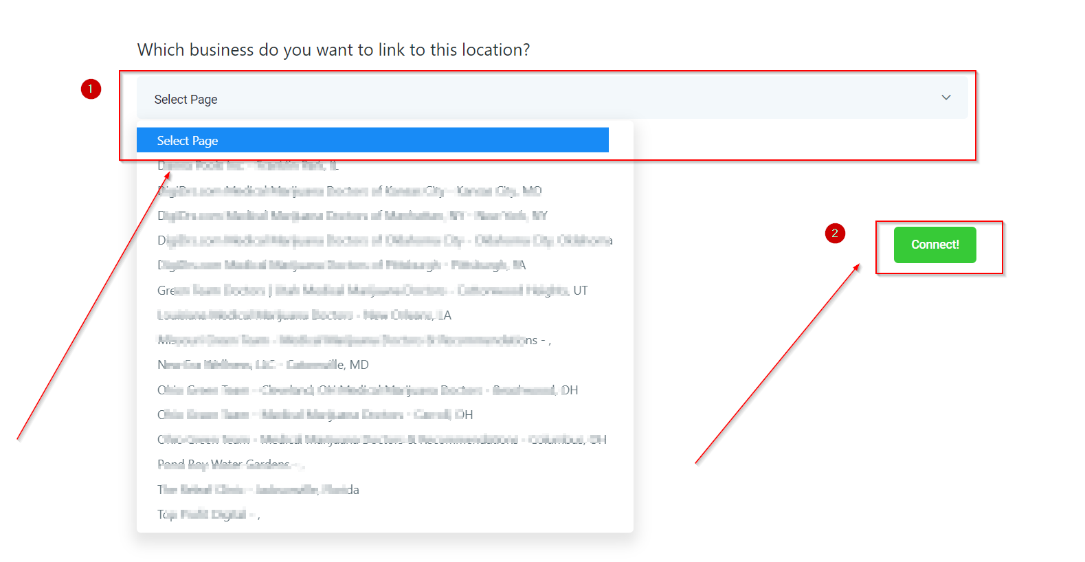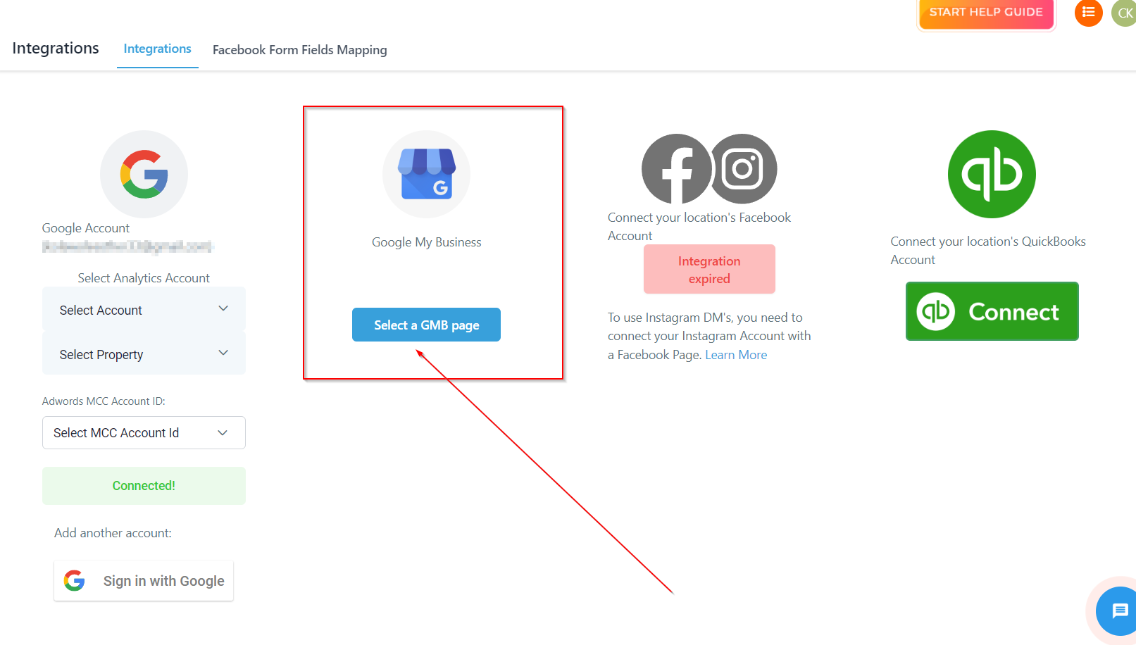 1. Select which of the google my business account you would like to connect to the CRM location.