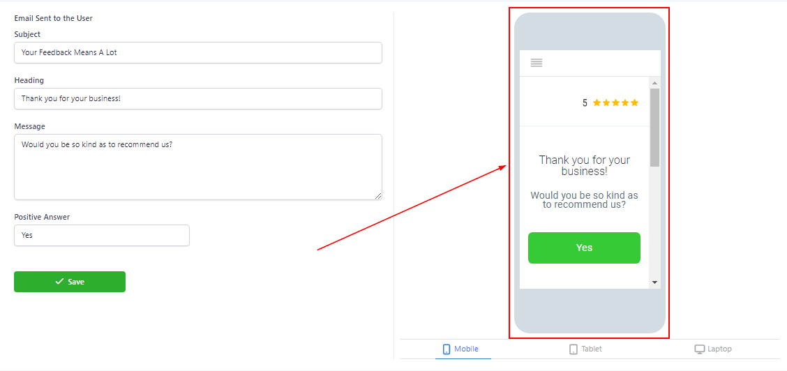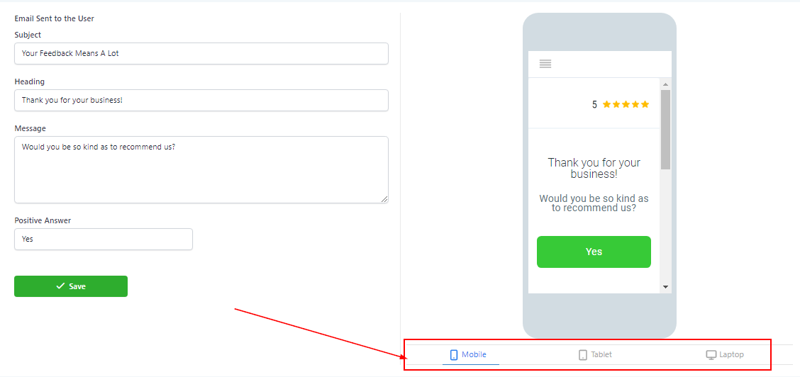 If you want to view this custom email in different screen types, you can select from laptop, tablet, or mobile here.
