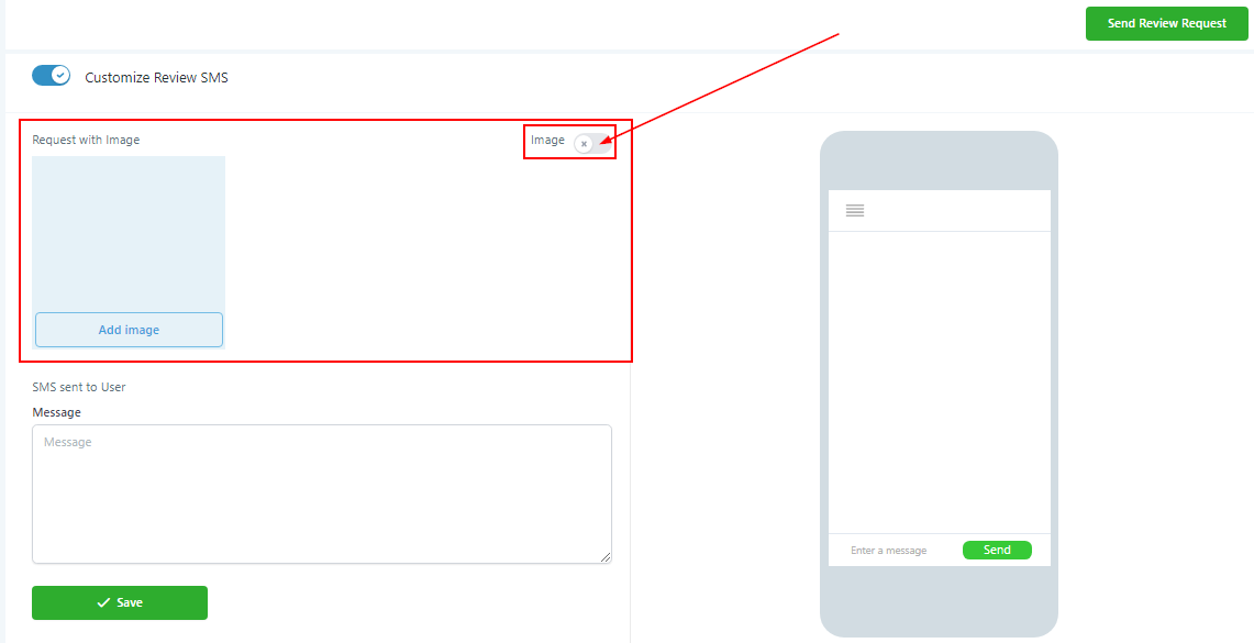 If you’d like to use an image in your SMS, you can turn on that feature here.