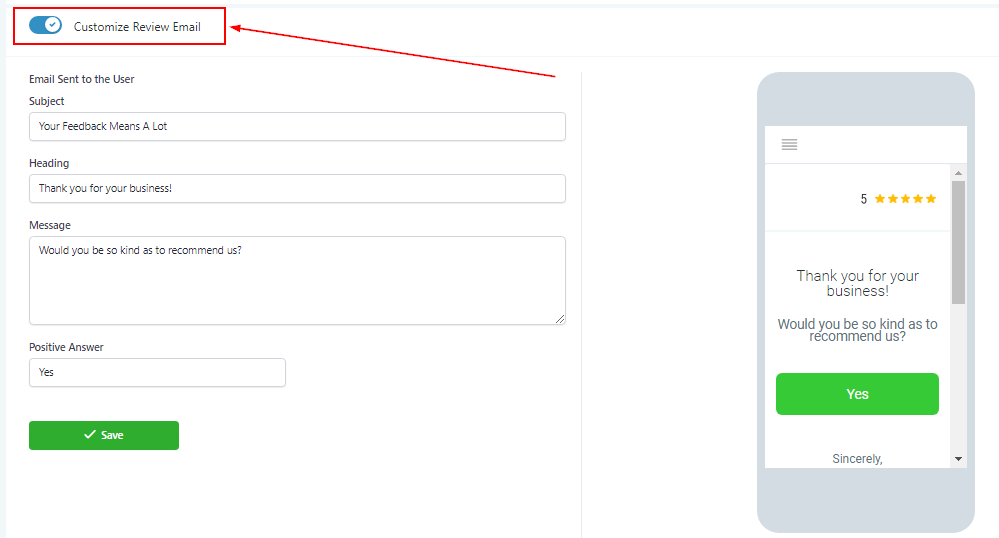Customize Review Email