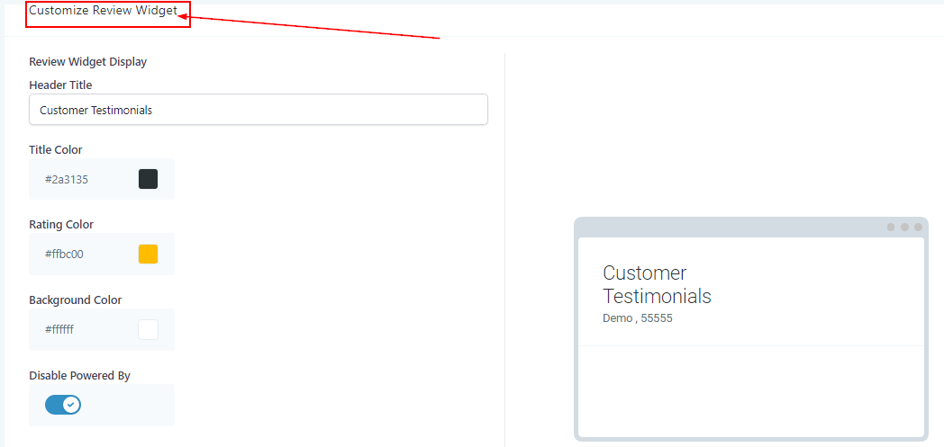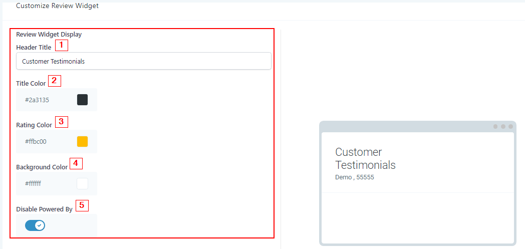 Customize Website Review Widget