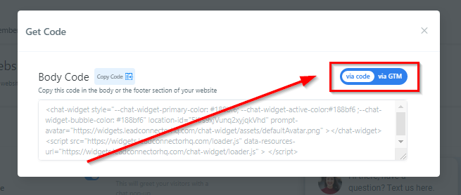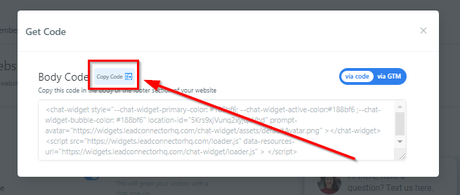 Here you will find the code that you’ll need to install on your website or application in order for this chat widget to be shown to visitors.