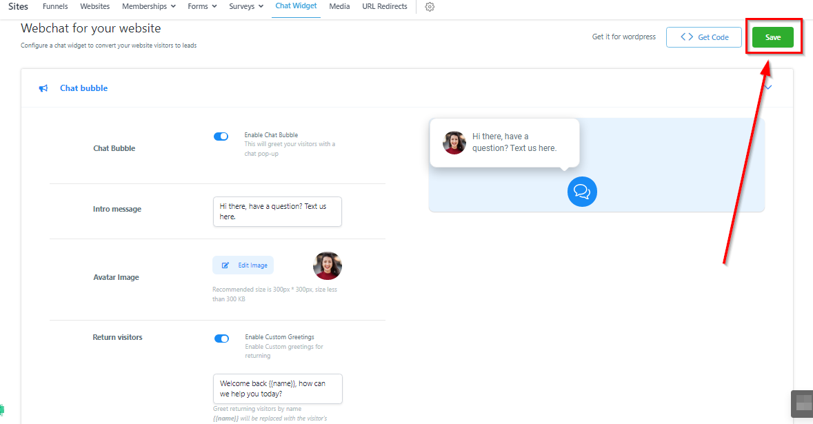 Don’t forget to save your changes after editing your chat widget.