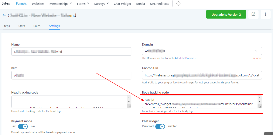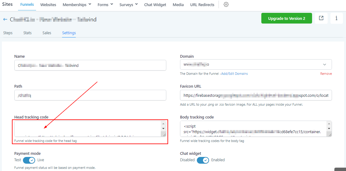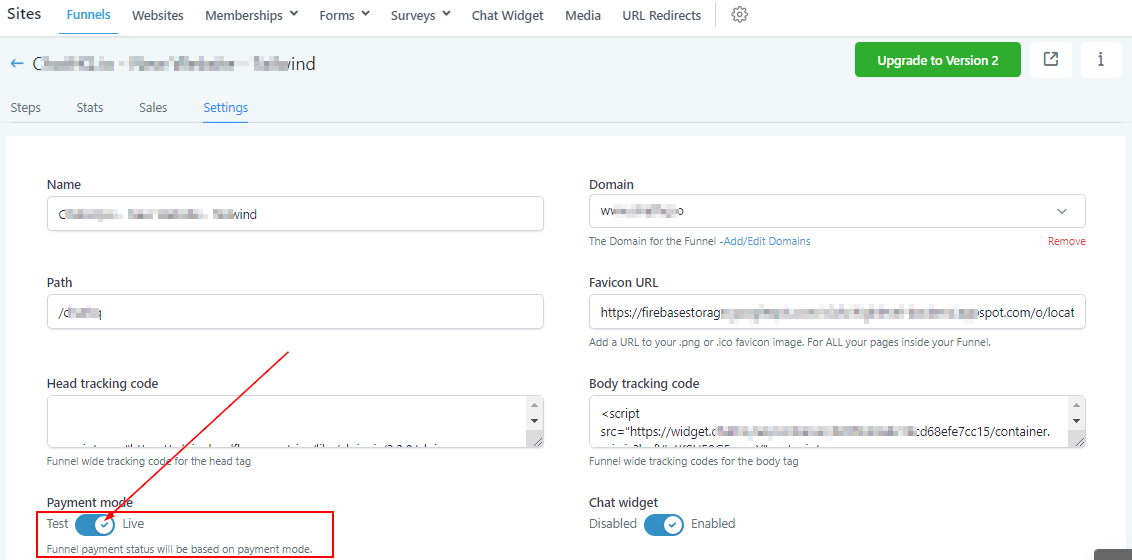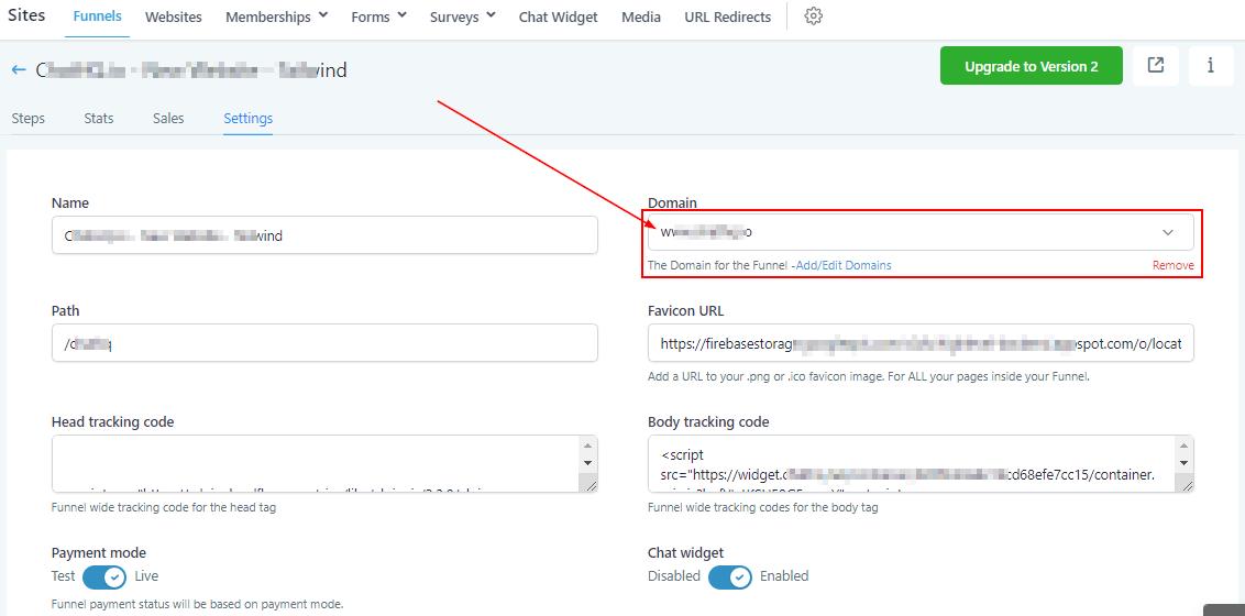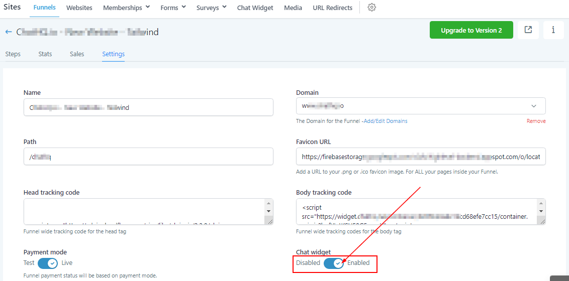 If you want to upgrade from funnel version 1 to version 2, click on this ” upgrade to version 2″ button.