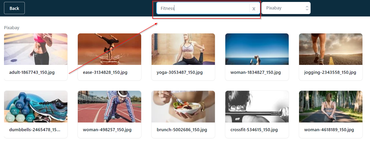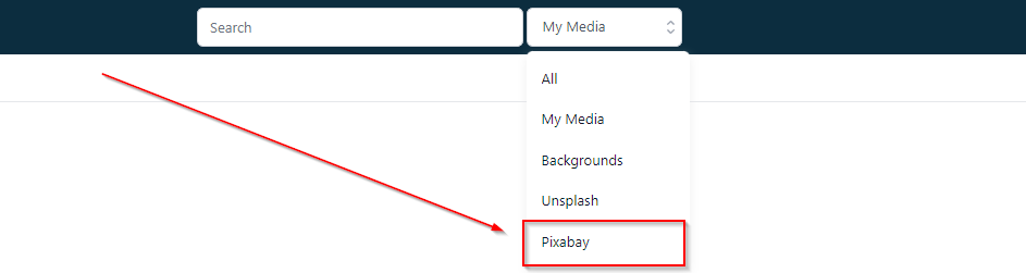 In order to use Pixabay images, click the navigation drop down and select Pixabay.