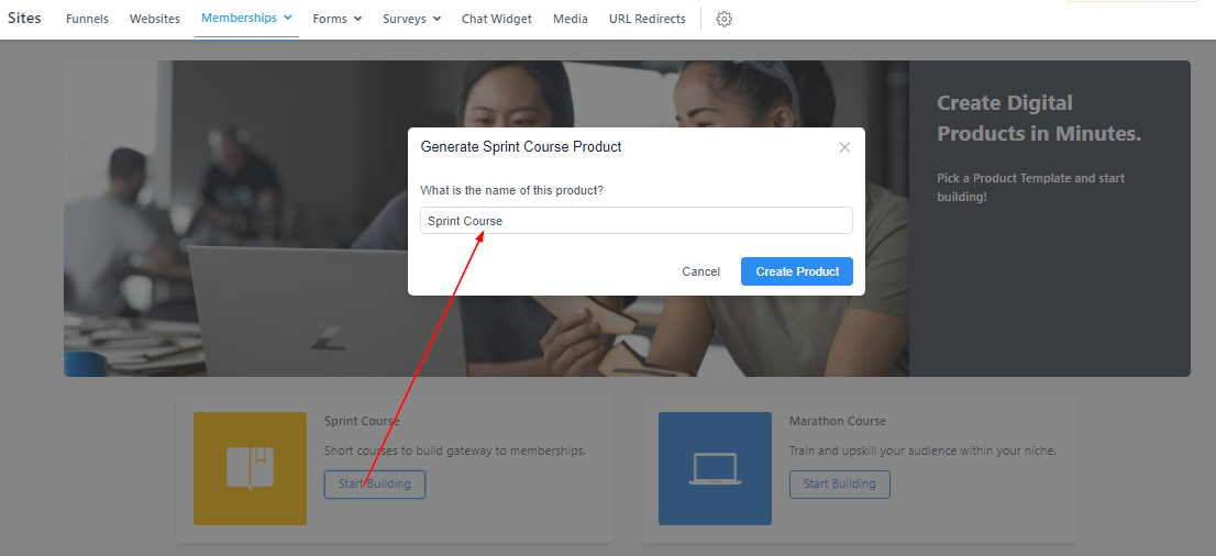 You can decide to use the templates provided (Sprint, Marathon, and Membership) or build your course from scratch. The process of creating these courses is all the same.