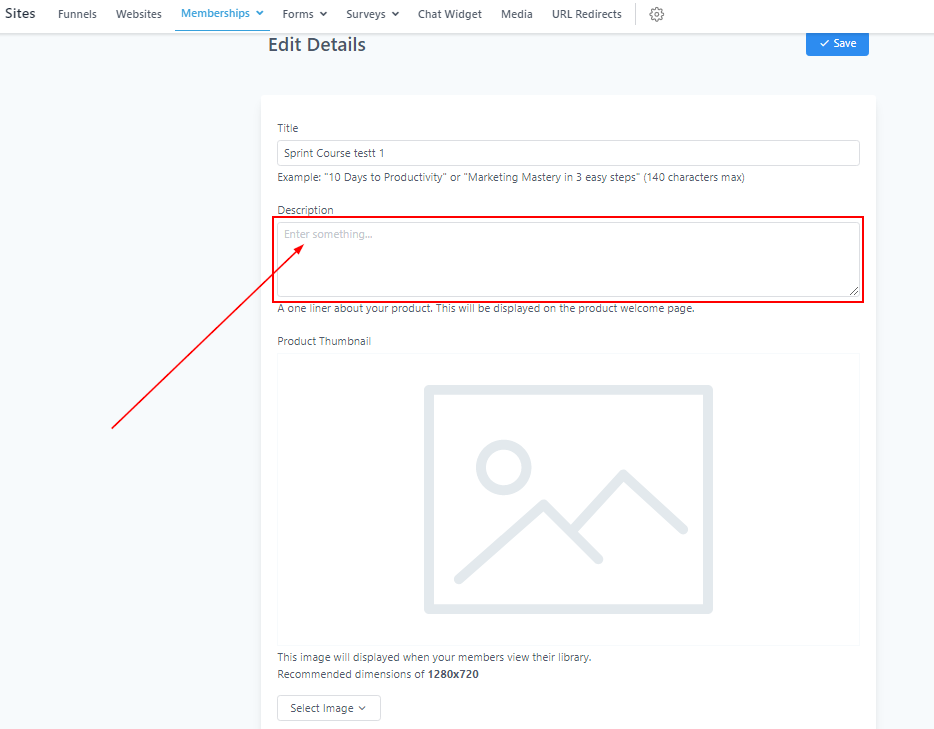 In the Description box, you can type a one-liner about your product to give the members a glance-knowledge about it. This description will be displayed on the product welcome page and you can click on “Preview” or “Go To Product” to see how it looks when published.