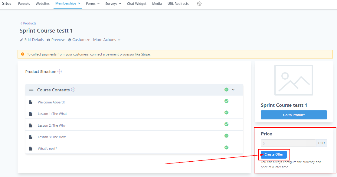 This is where you can create courses to build a gateway to memberships.