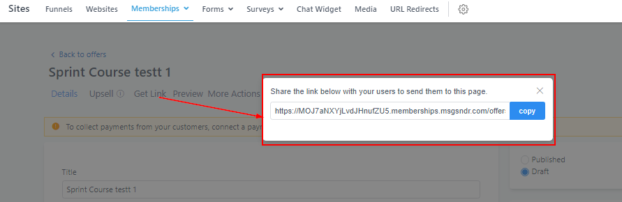 To copy/share the URL link of a course product, simply click on the “Get Link” icon then click the “Copy” button.