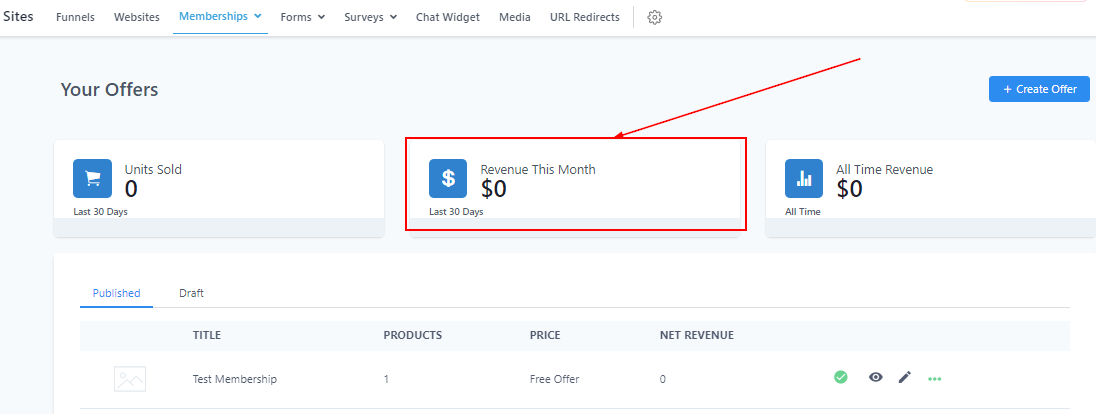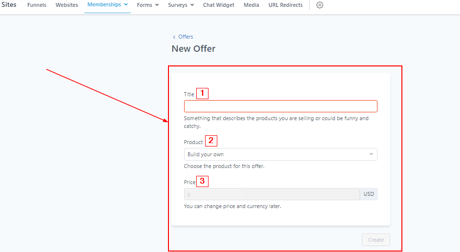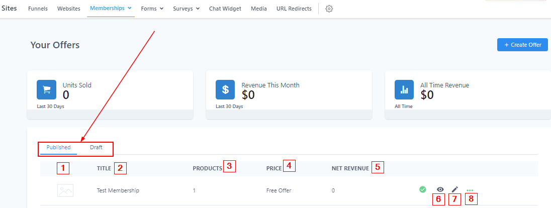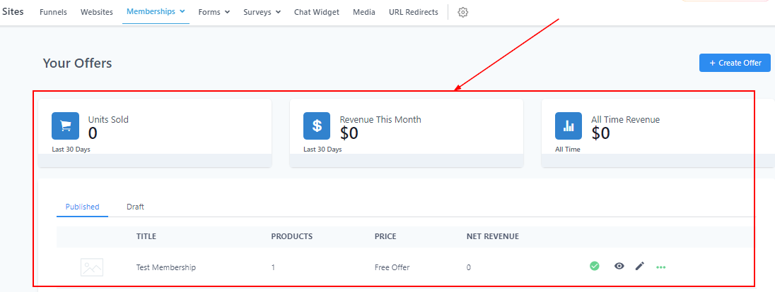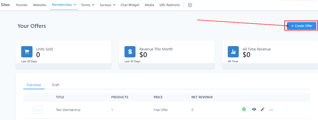 To create a new offer, simply click on the “Create Offer” button.