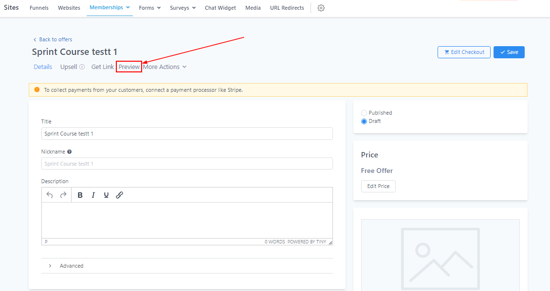 - You may add a price that you can edit later as well (If you are not connected to a payment processor like Stripe, you won’t be able to add a price offer).