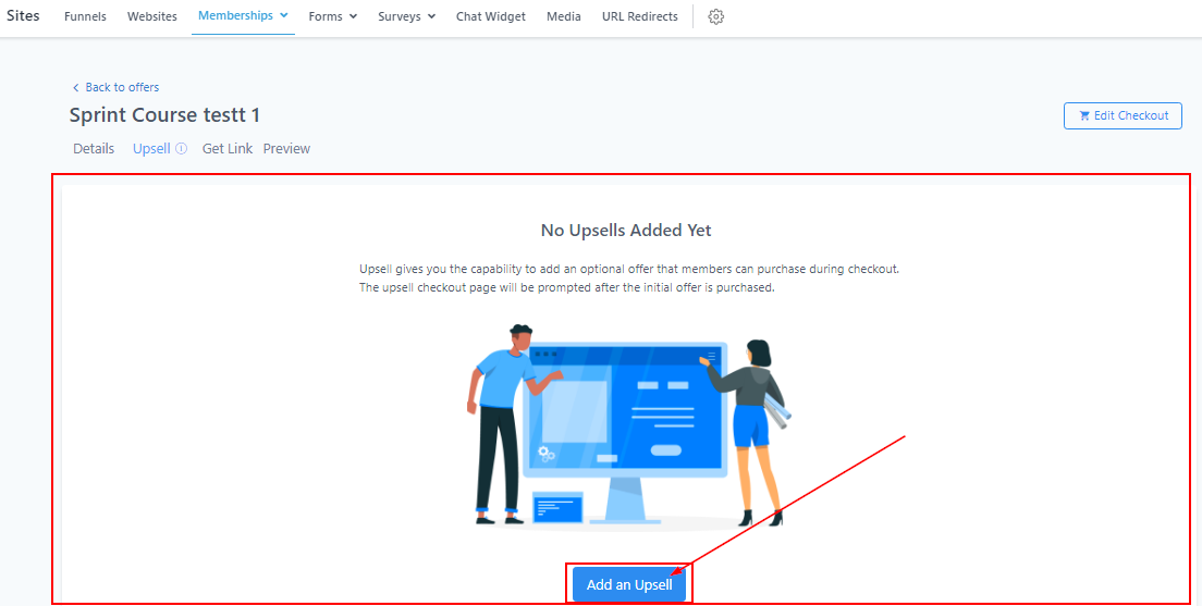 Simply click on the “Add an Upsell” if you want to add one.