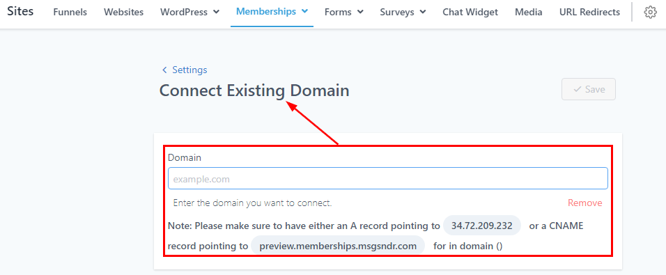 Connect Existing Domain
